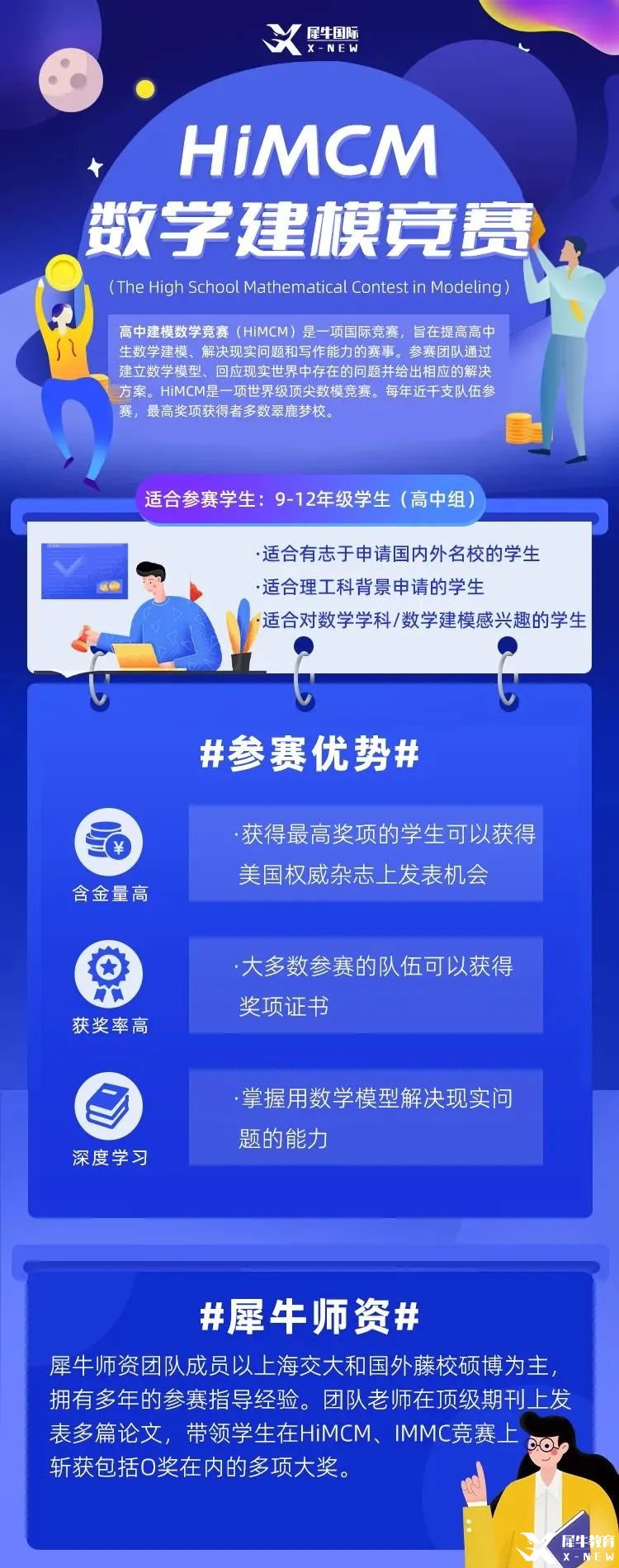 针对HiMCM竞赛培训,犀牛开设有专门的辅导培训课程,包含直通车班、精英常规班和精英冲刺班。