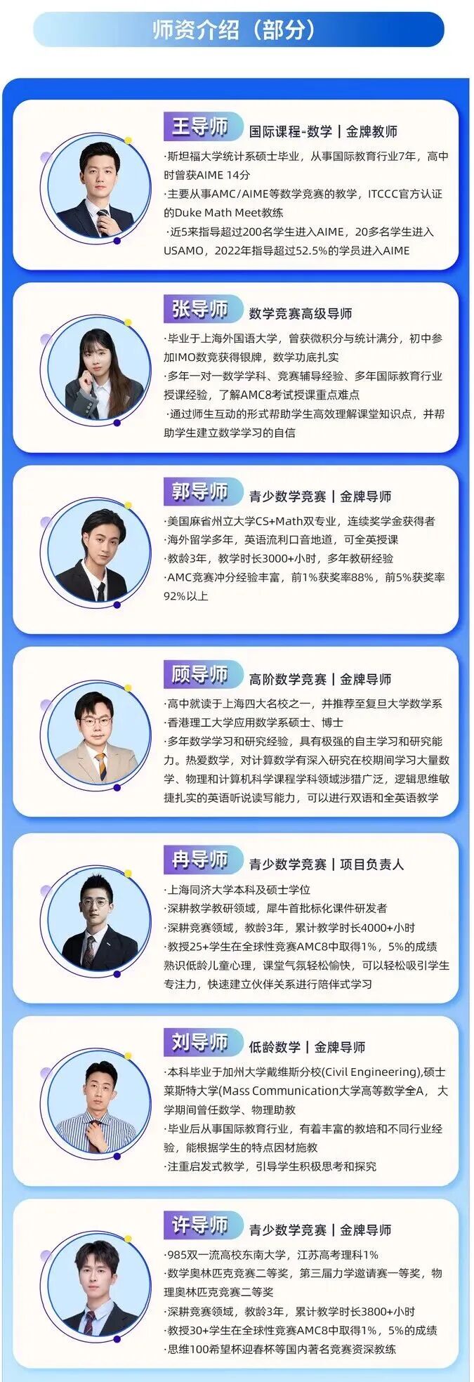 帮助一批又一批学员在AMC8、AMC10、AMC12中拿下全球前1%、前5%的高分成绩——真实的成绩数据、可查的获奖案例,就是教学效果最好的证明。