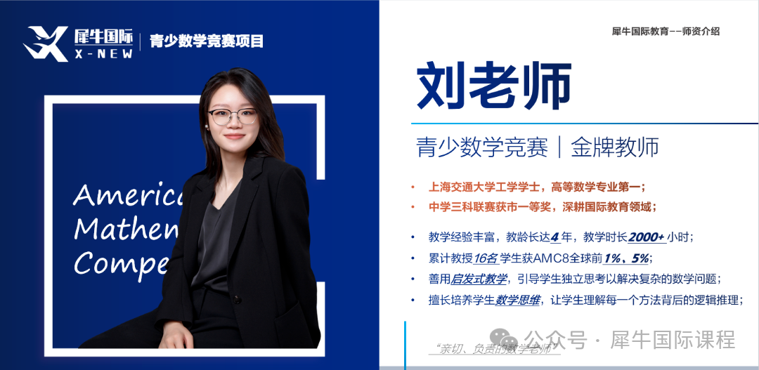 名师授课,中英双语教学,超丰富经验的数竞外教带队,针对性突破重难点,扎实基础,提升学术能力,冲击竞赛奖项。