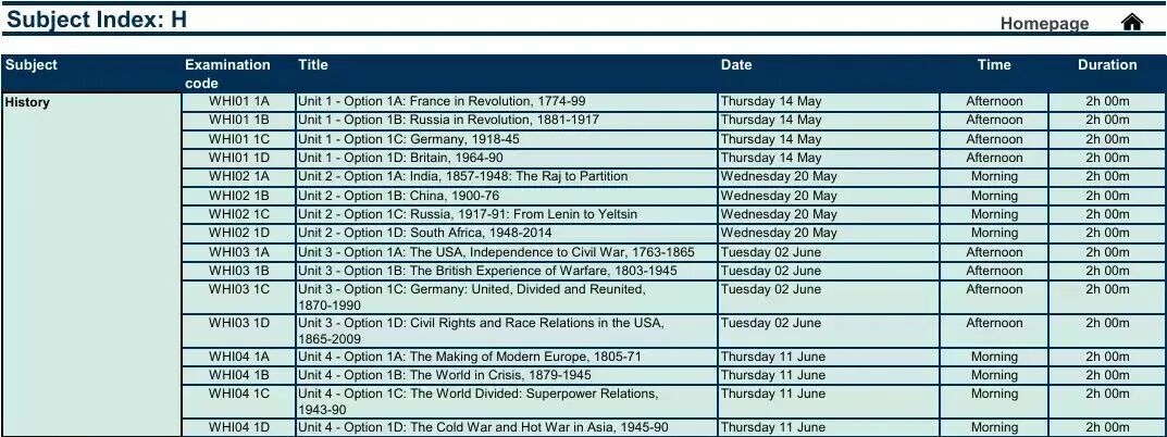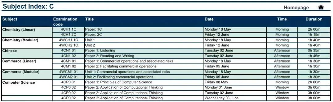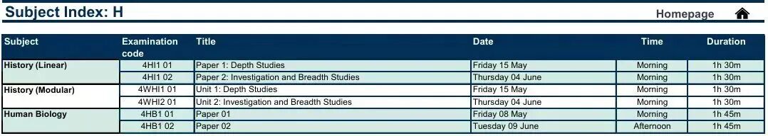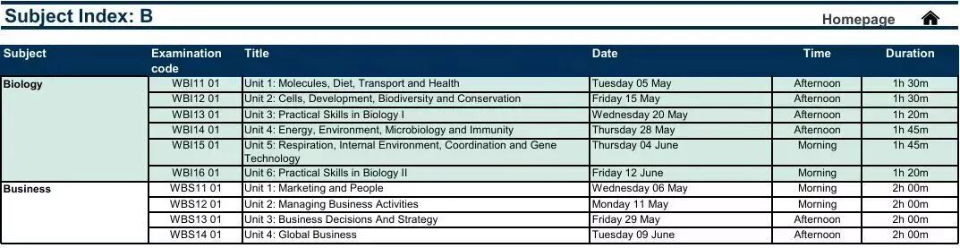 A-Level考试安排