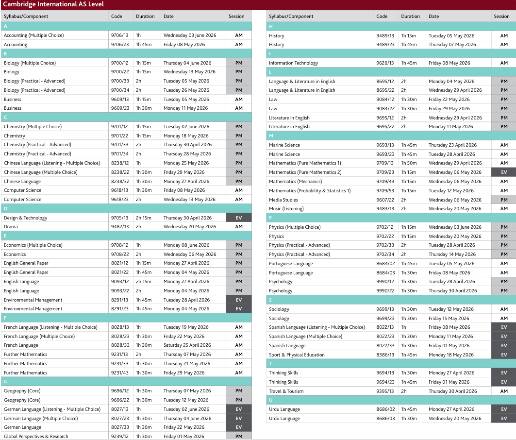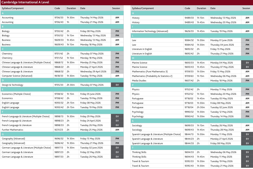 · A-Level:2026年4月27日 - 6月9日