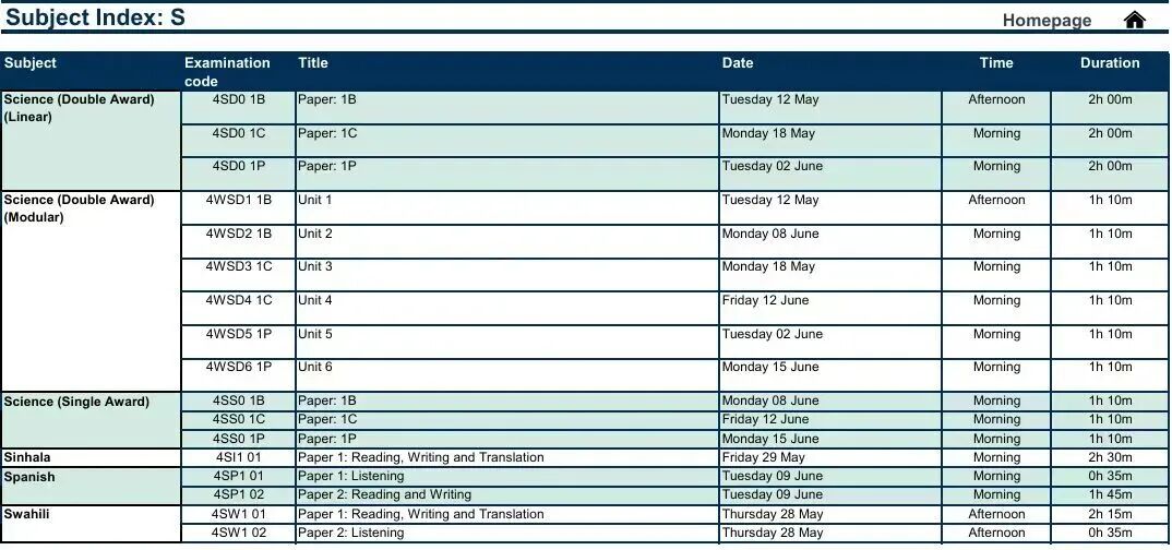IGCSE考试安排