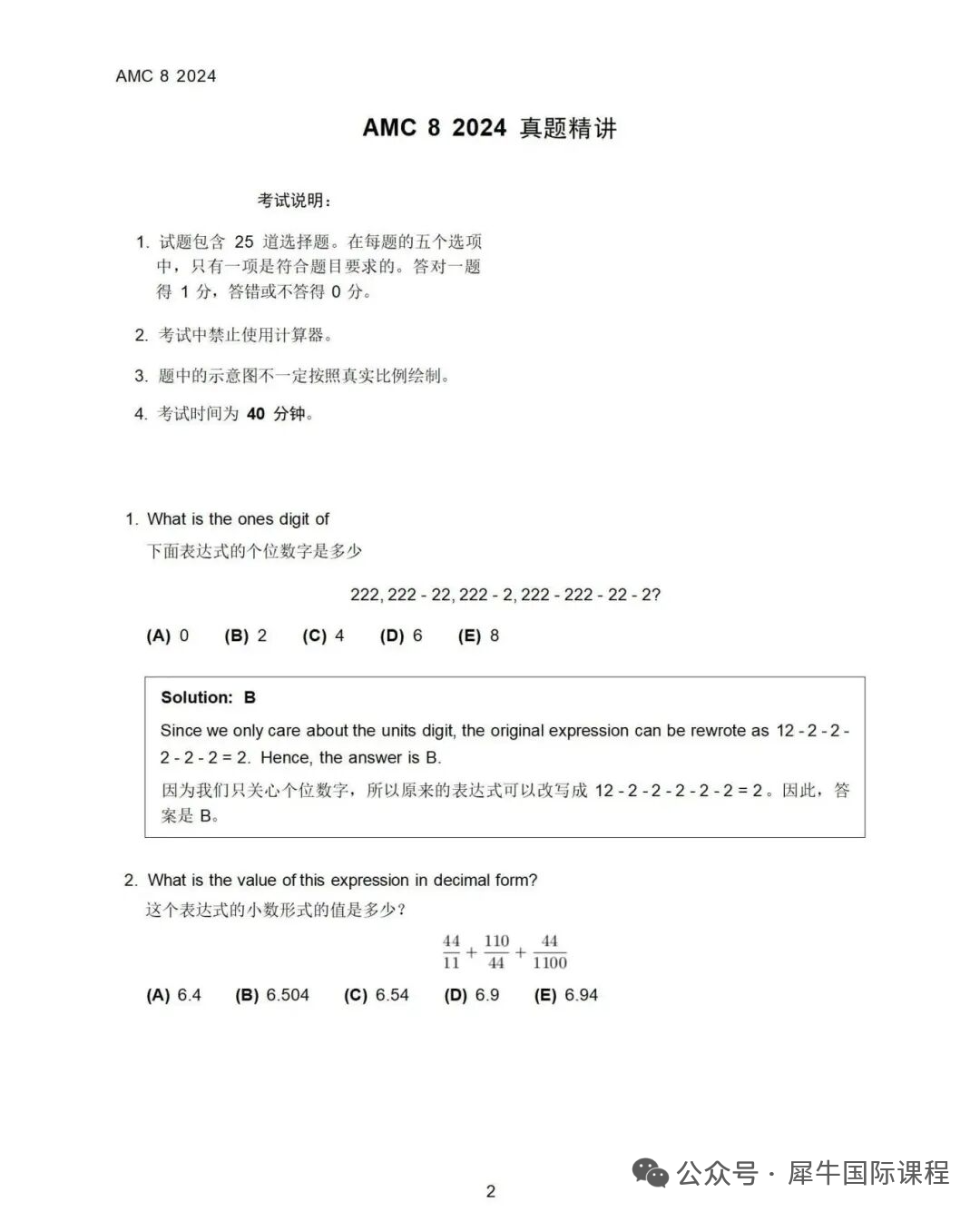 答:AMC8数学竞赛现在在中国赛区现在是中英文双语试卷了,题目展示形式为英文题目+中文翻译。