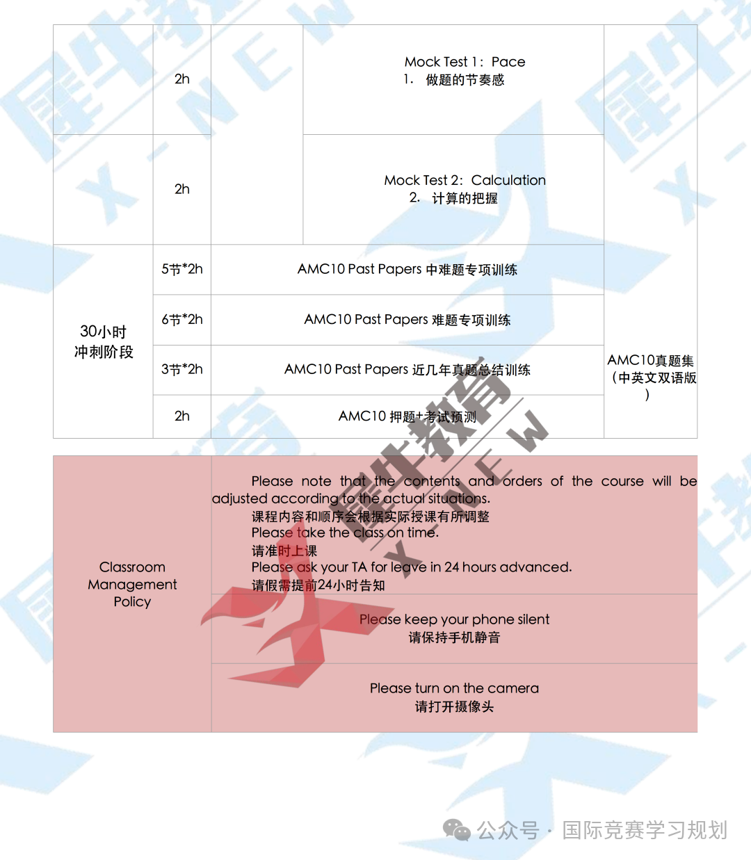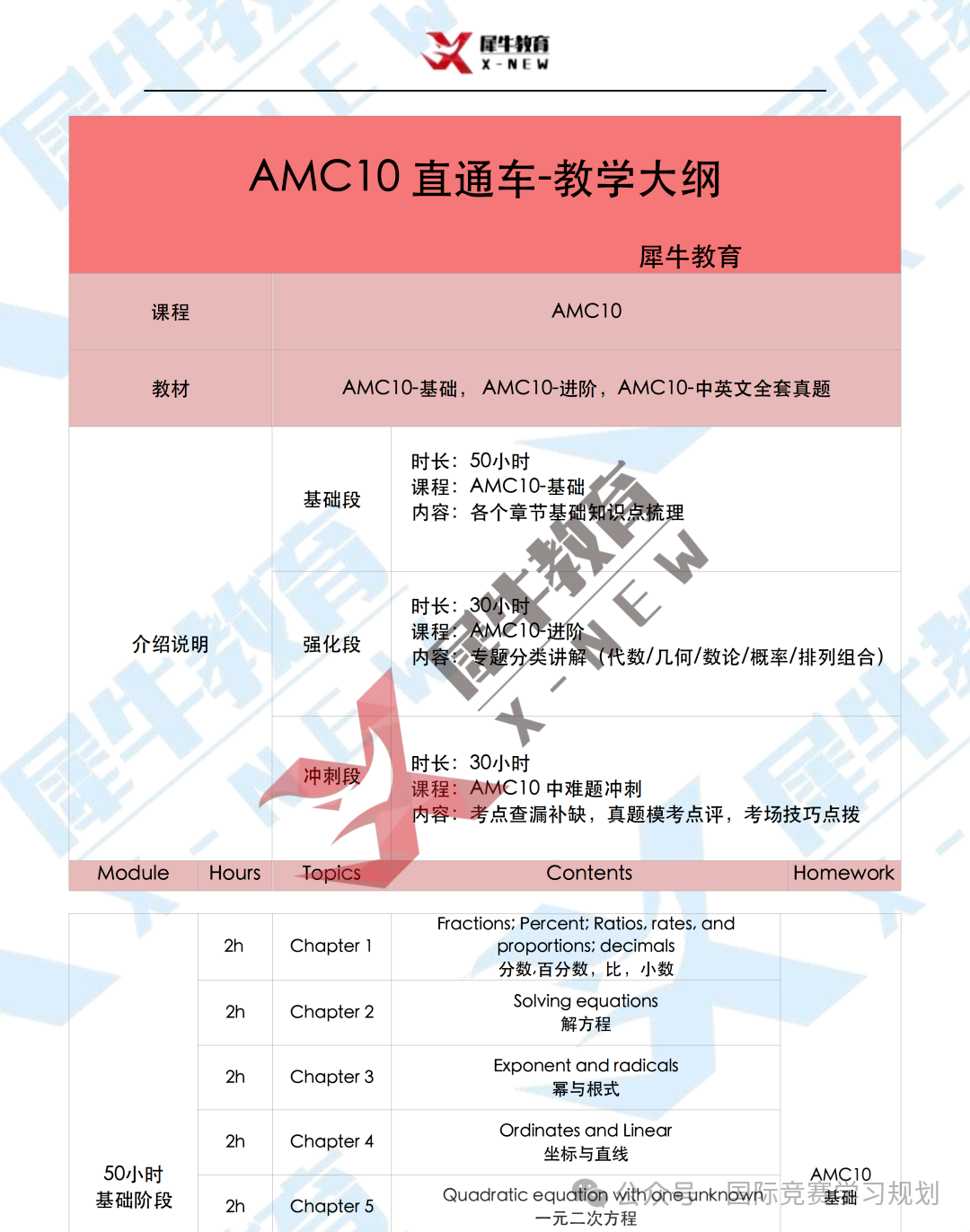 AMC10直通车课程大纲展示: