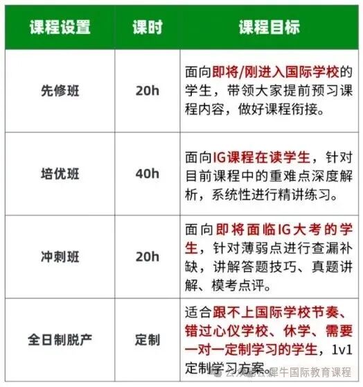 IGCSE培训课程:IGCSE先修班,IGCSE培优班,IGCSE强化班,IGCSE冲刺班,IGCSE脱产课程;