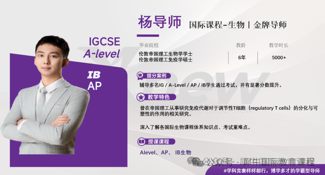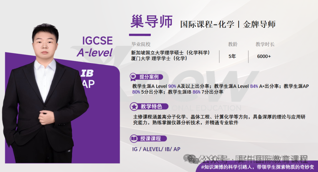 教学生涯A Level 90% A及以上出分率;教学生涯A Level 84% A*出分率;教学生涯AP80%5分出分率;教学生涯IB 86%7分出分率;