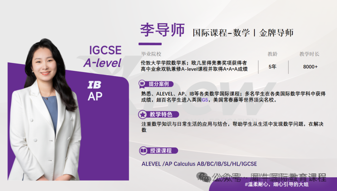 熟悉、ALEVEL、AP、IB等各类数学国际课程;