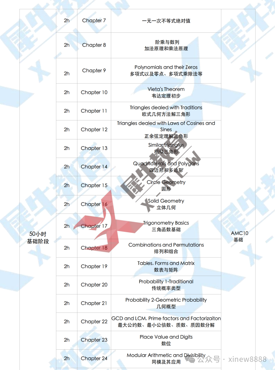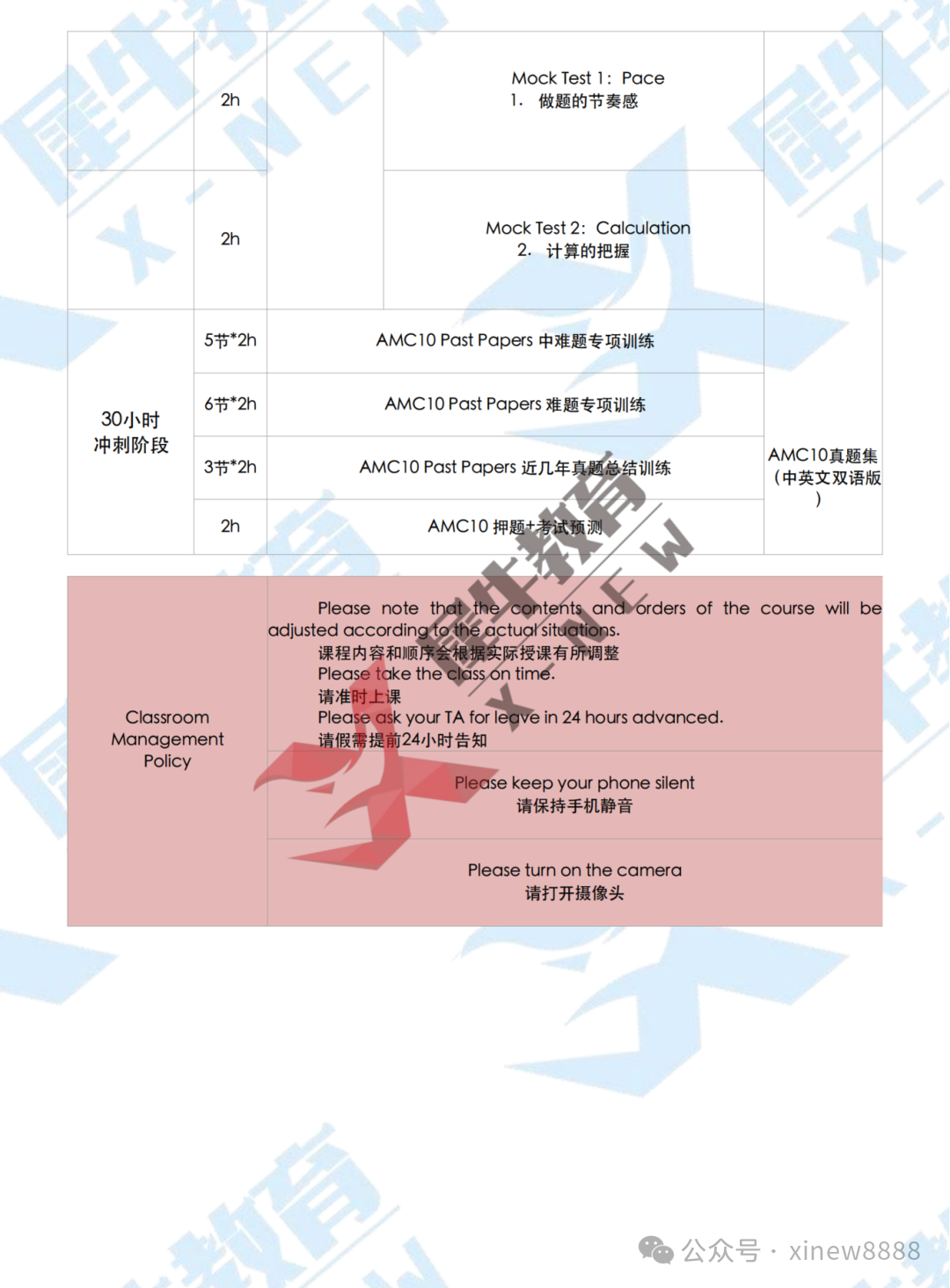 详细AMC10培训课程大纲如下: