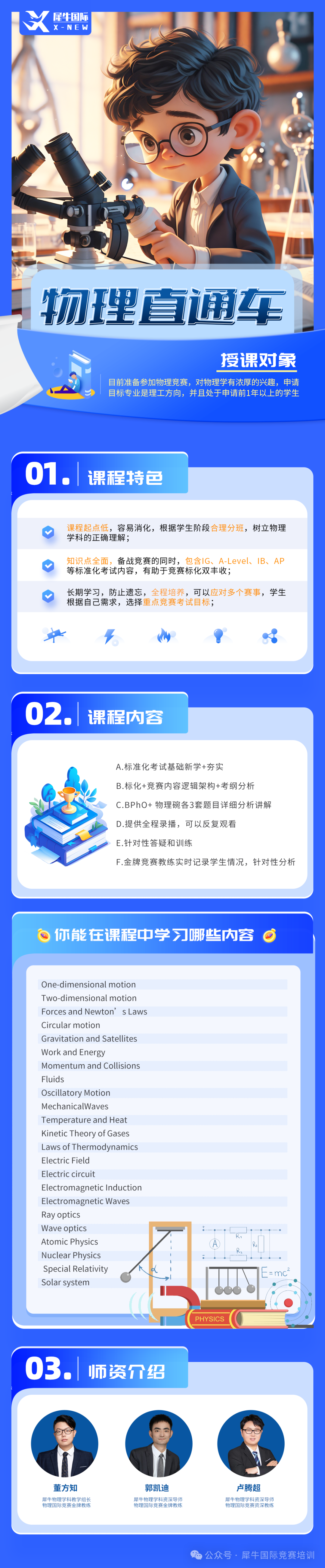 物理碗(Physics Bowl)由美国物理教师协会(AAPT)主办,是全球权威高中生物理竞赛。其高含金量、强学术性,且与AP/IB/A-Level课程高度契合,是美本理工科(物理、工程、CS方向)申请的核心加分项。