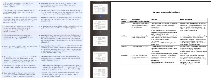 Paper 1 分析写作的一个最重要的部分就是辨认修辞/视觉手法,并且使用相应的 terminology 进行分析。因此,对于这些修辞手法和概念的掌握得越好,考生就能够在考试过程中越游刃有余地踩到得分点。另外,我们也提供分析写作的句式模板与替换词汇,帮助大家尽量减少文章中的用词重复,更容易取得高分。