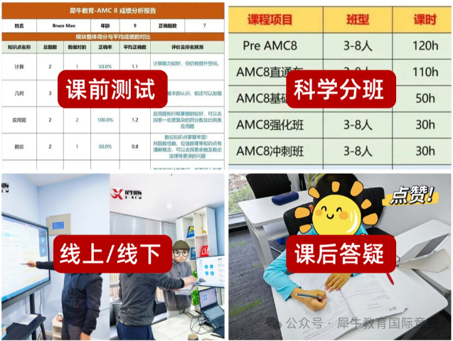 AMC8竞赛考试结束,27年AMC8备考正式开始!犀牛AMC8竞赛2027年AMC8竞赛培训课程安排已出炉,多种班型可选,课程线上线下同步授课。
