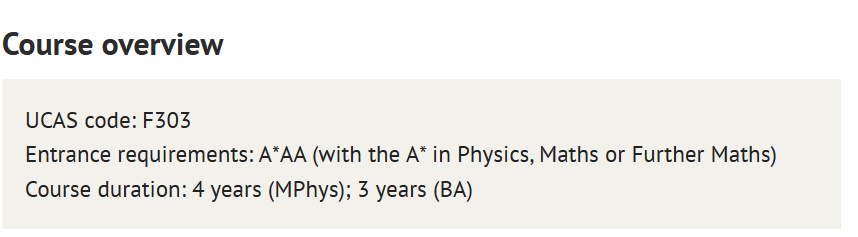 牛津物理专业选课需要物理、数学或进阶数学成绩达到A*。
