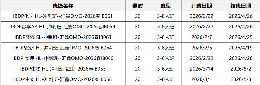 犀牛IB课程新班安排