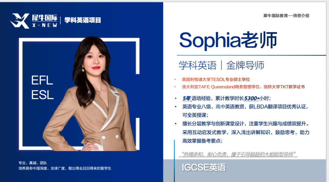 教授学生IG英语EFL的A率90%,ESL的A率85%,超过90%学生进入Qs前100理想院校;