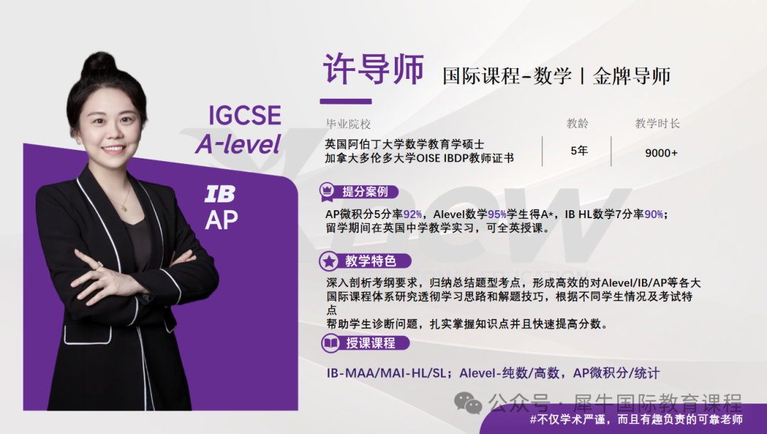 犀牛ALEVEL课程培训教师团队由剑桥大学、帝国理工学院、伦敦大学学院、香港大学、新加坡国立大学等TOP学府硕博导师组成,平均教龄超5年。