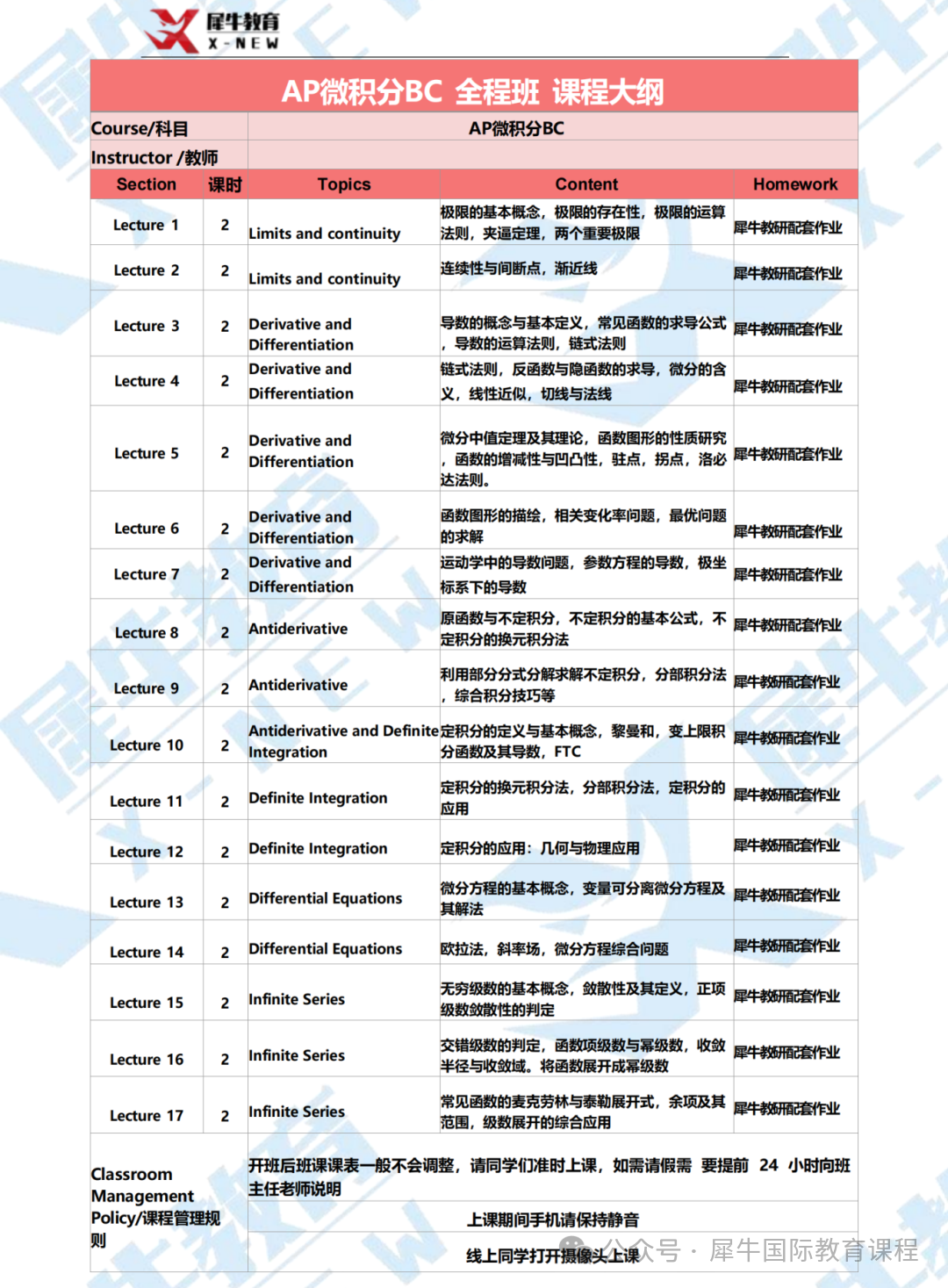 犀牛教育针对AP课程开设培训辅导,包括基础班、强化班、冲刺班、脱产等不同班型,线上/线下、小班课/一对一,学生可根据自己学习情况选择合适的班型。