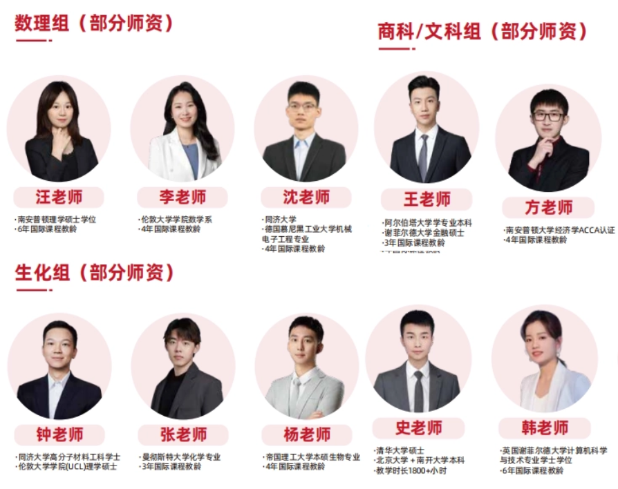 汇集毕业于剑桥大学、伦敦政治经济学院、伦敦大学学院、帝国理工、斯坦福、南安普顿大学、新加坡国立、南洋理工大学、香港理工大学等名校毕业师资,可以完美匹配IG各个科目教学,学科专业度拉满。