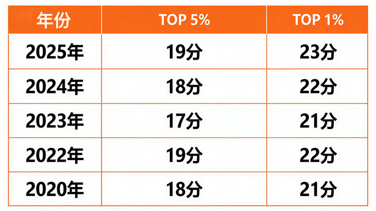 下面是2020-2025年AMC8竞赛分数线: