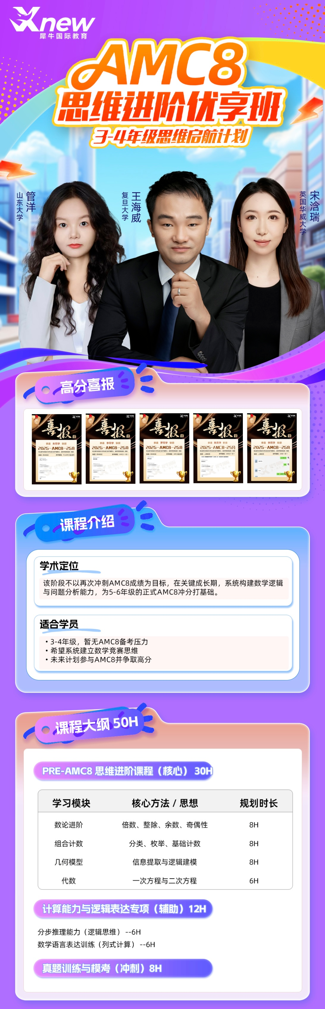 犀牛专注国际竞赛辅导多年,尤其是AMC竞赛产品,已经有了一套完整、系统的教学体系,并且集中清北复交藤校资深导师授课!
