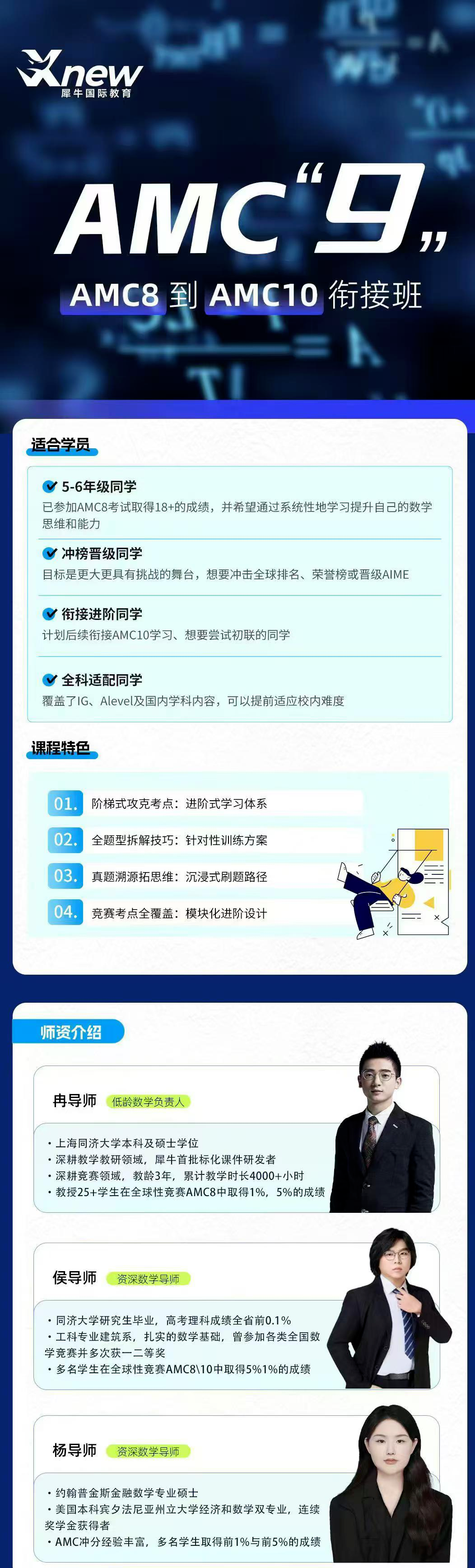 犀牛专注国际竞赛辅导多年,尤其是AMC竞赛产品,已经有了一套完整、系统的教学体系,并且集中清北复交藤校资深导师授课!