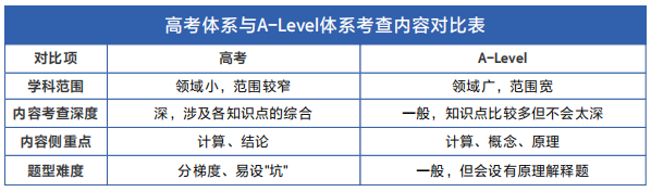 从考试科目内容角度看:A-Level更广