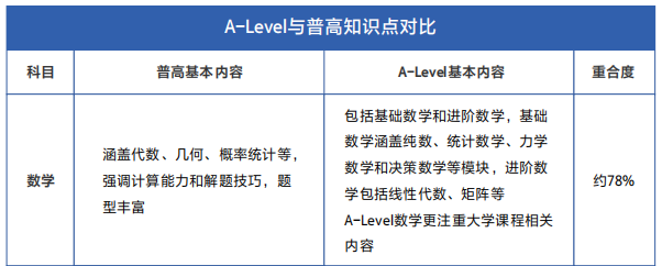 单科学习范文更广:以数学为例,A-Level数学包含微积分、矩阵等大学内容。