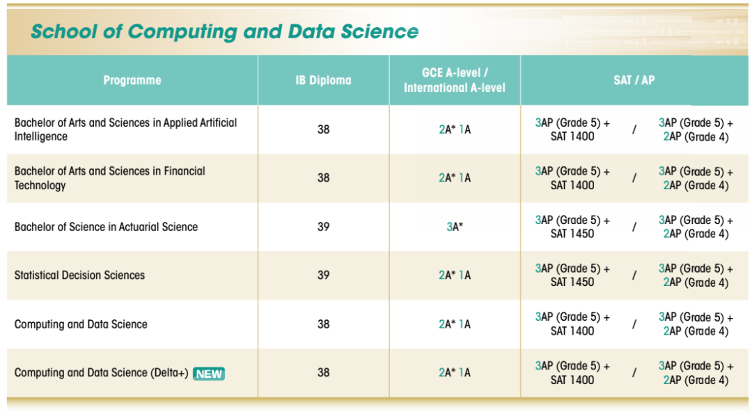 26fall增加了一个新专业——计算机与数据科学(Detla+),目前Alevel要求:2A*1A。