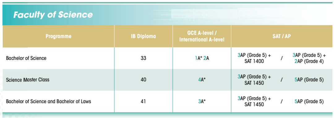 教育与理学士:A-Level从3A→1A*2A,IB/SAT要求同步上涨。其他教育项目为:3A