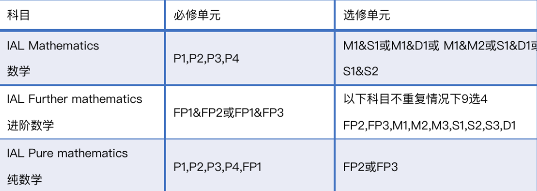 三大科目分别为:数学(Mathematics)、进阶数学(Further Mathematics)、纯数学(Pure Mathematics);