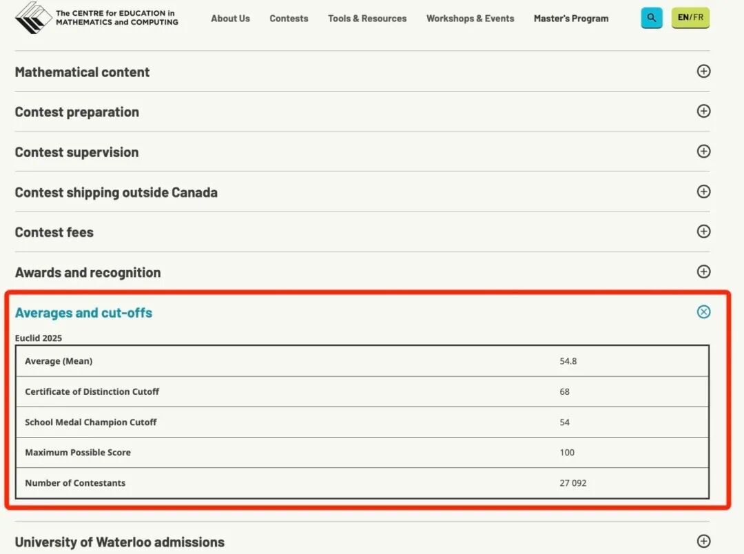 官网:cemc.uwaterloo.ca/contests/euclid.html