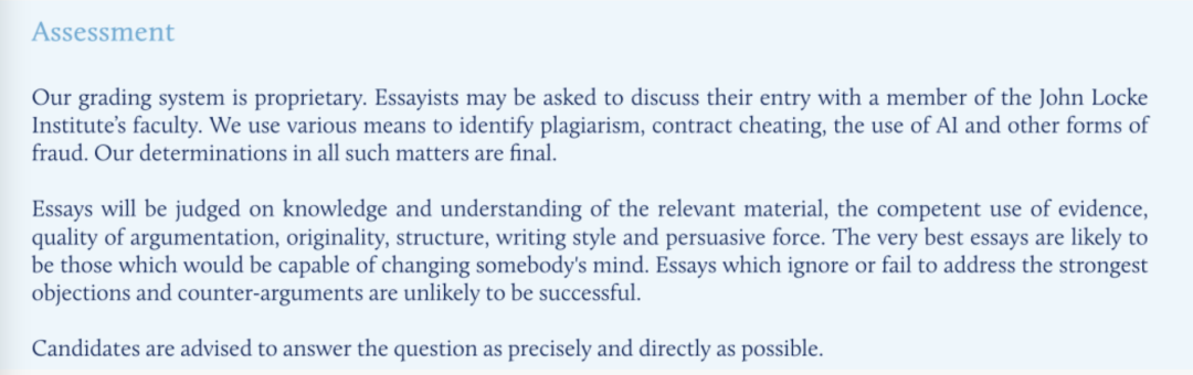 每位参赛者需提供一位熟悉其学术写作的推荐人的电子邮件地址。推荐人最好是学校老师,或者其他与参赛者无亲属关系的成年人。约翰·洛克研究所将通过电子邮件联系推荐人,以核实所提交的论文是否确为参赛者的原创作品。