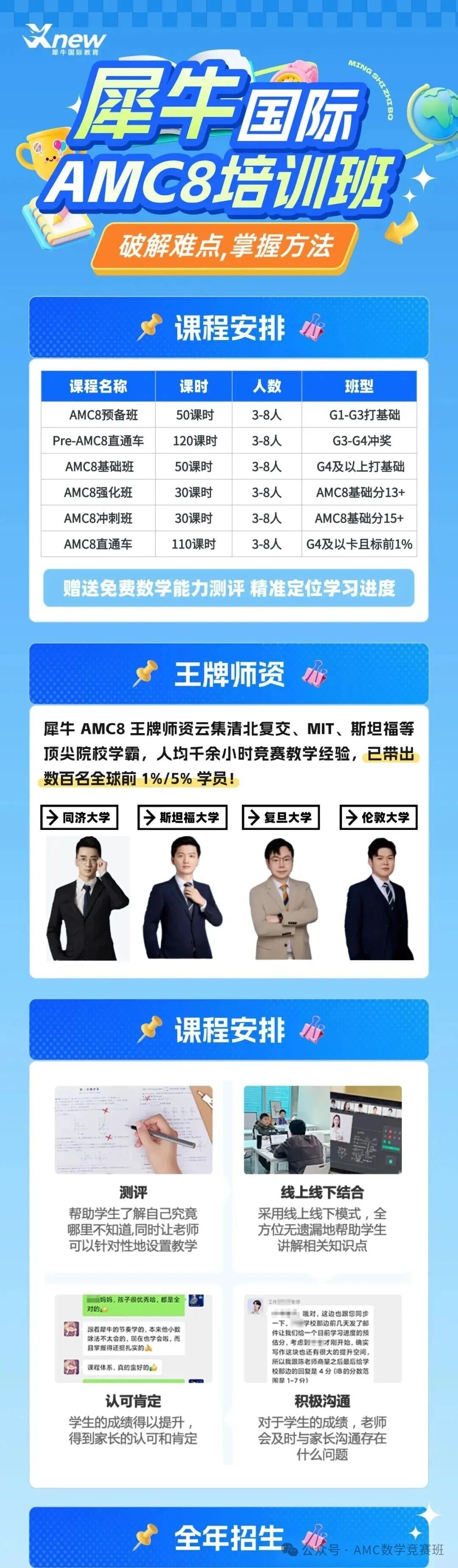 人大附/人大附分校、清华附创新班、十一学校、北大附、建华实验学校等,在这些学校的简历投递、校园开放日、自主招生环节,一份优异的AMC8成绩(通常是前5%,甚至前1%)是孩子数学思维能力突出的强有力证据,能让孩子在众多优秀简历中脱颖而出。