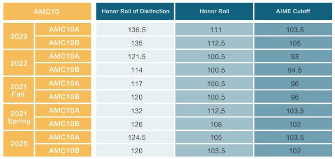 2023AMC10A卷需要达到103.5分,B卷需要达到105分,而拿到全球前1%,AMC10A卷136.51分,B卷135分,AB卷的分数差别不大,相较于去年分数线大涨了10分左右,备考24年11月的同学建议同学们能尽早备赛。>>>>