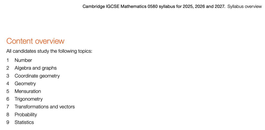 IGCSE数学:考察范围广泛,主要包括纯数学、代数、图形、几何、概率和统计等六个主要单元。虽然知识点涉及面广,但考察深度相对较浅,没有明显的难题和题目陷阱。