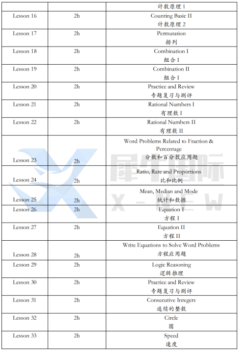 犀牛Pre-AMC8培训课程是专门为3-5年级学生设计,用“4+3+2”模式补齐小学重难点,提前接触初中知识点,帮孩子先把竞赛思维建立起来,由浅入深,循序渐进,帮助同学们一步步冲刺AMC8竞赛高分成绩。