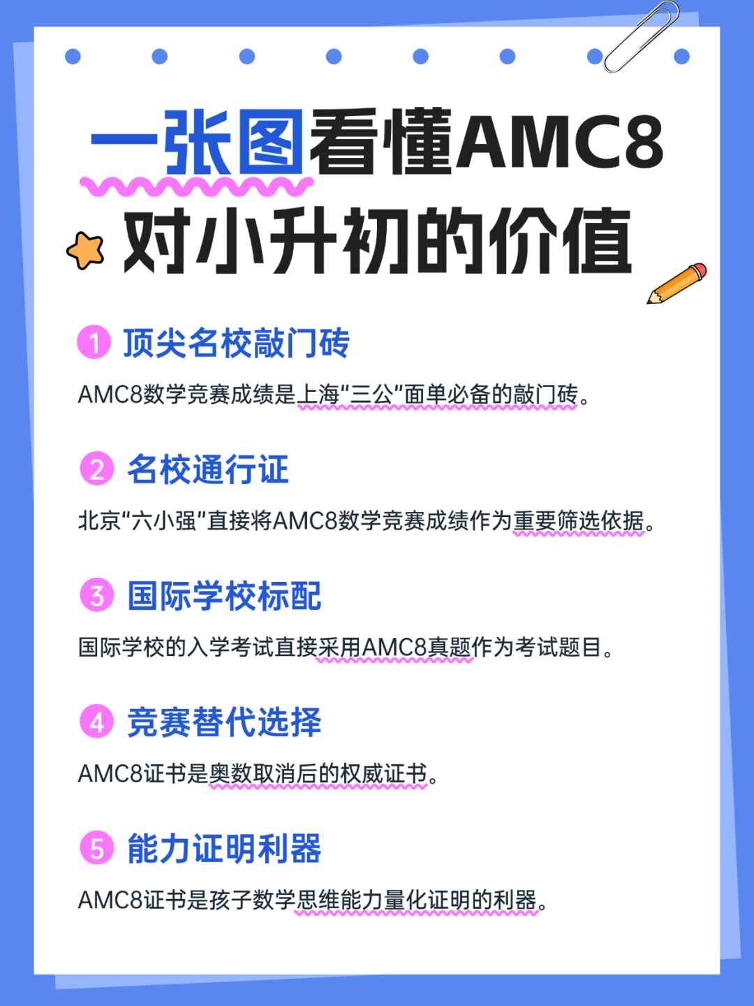 每年小升初季,家长群里自会被一个关键词刷屏:AMC8.有人认为这是“上海三公敲门砖”,有人称它为“北京六小强标配”,更有深圳家长直言:“没有AMC8奖项,小升初简历都不好意思投出去”。