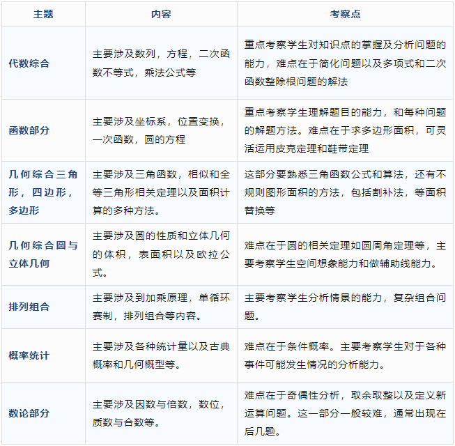 AMC10的考查内容与中考有90%的相似性,但它主要面向美国10年级及以下的学生,因此考查范围也会包括9-10年级的数学知识,这使得AMC10的难度略高于国内普通中学的数学水平。对于初中生来说,准备AMC10除了掌握学校日常教学内容外,还需要额外学习一些高中数学知识。