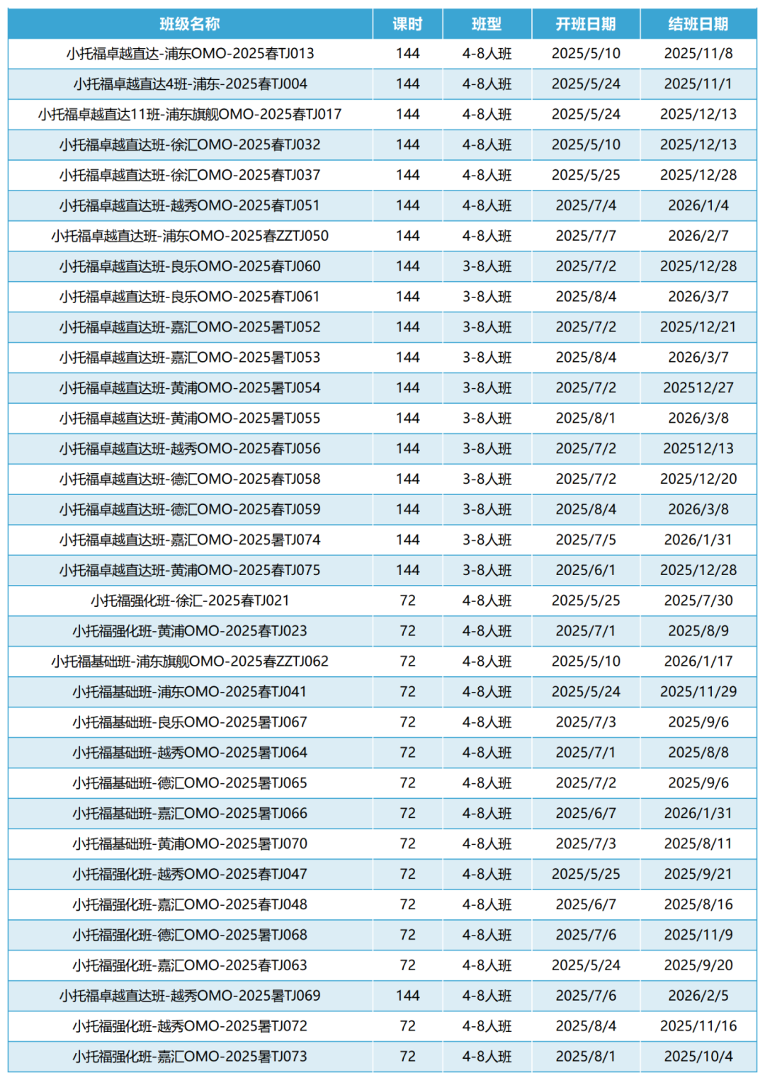 课程类型:4-8人小班/一对一课程