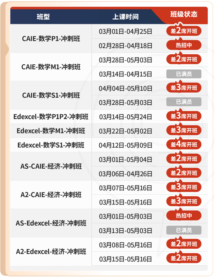 ALevel夏季大考辅导班