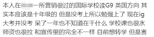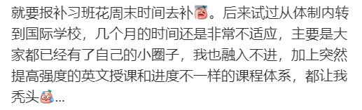 社交媒体上一位同学对于就读国际学校的评价