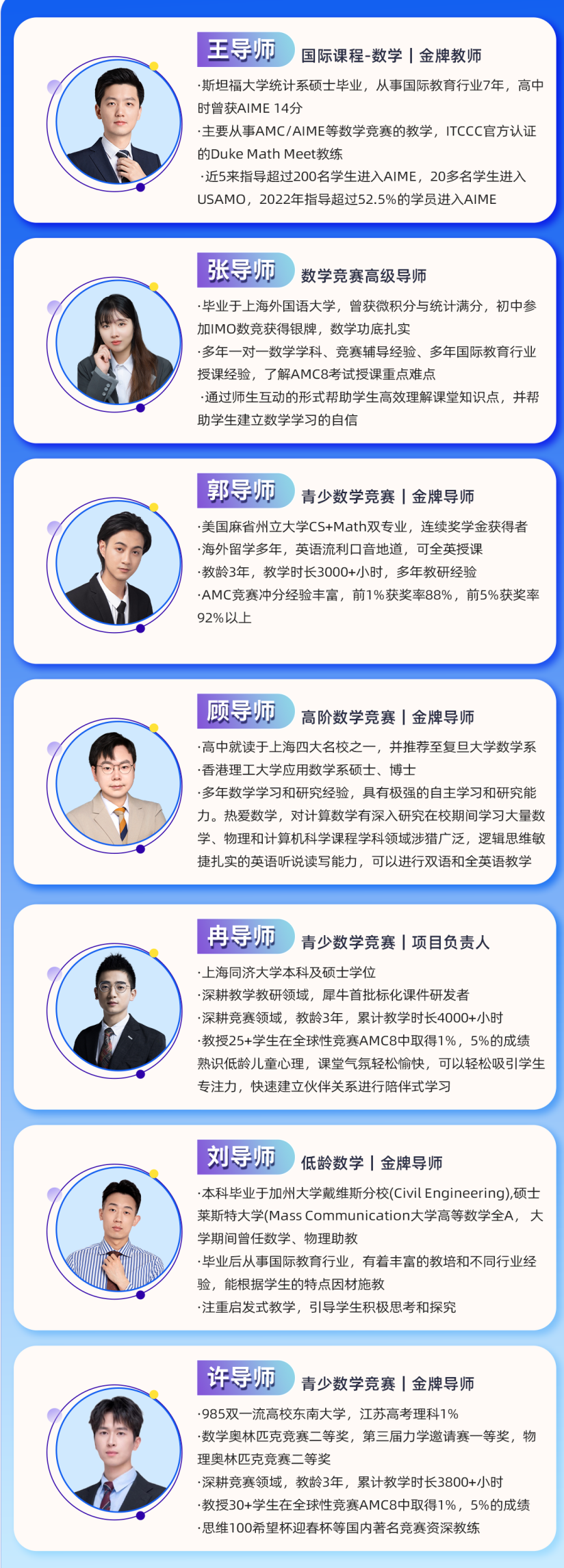 犀牛AMC10春季班正在火热开班中,汇聚国际竞赛名师,他们能够准确把握竞赛的命题趋势和考点,带着学生梳理AMC10考点,补充基本知识,完善知识框架。传授解题技巧和思路,帮助学生拿奖。