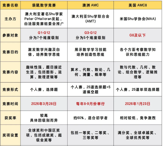 低年级学生参加的热门国际数学竞赛中袋鼠,澳洲AMC和AMC8竞赛哪个更合适?如何选择低龄国际竞赛?AMC8、袋鼠和澳洲AMC哪个更难? 这三个竞赛要怎么选?