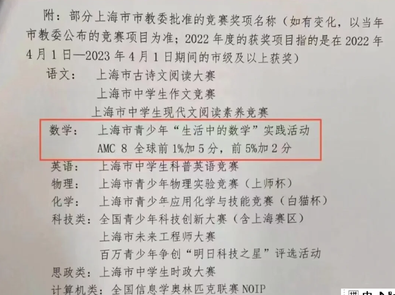 但这不代表没有出国留学计划的学生就没有必要考AMC8数学竞赛了。实际上,对于国内教育体系内的学生而言,AMC8数学竞赛同样具有很高的价值。在许多一线大城市的小升初选拔过程中,不少头部知名学校对AMC8数学竞赛成绩给予了高度认可。