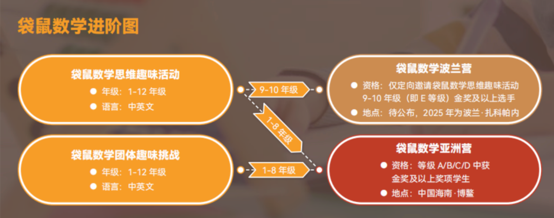 很多家长盯着AMC 8.但AMC8对逻辑深度、题目阅读能力要求更高,一二年级甚至三年级直接上AMC,其实压力不小。袋鼠就是一个非常合适的“过渡桥梁”。