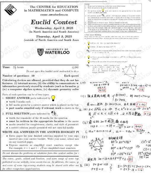 官网:cemc.uwaterloo.ca/contests/euclid.html