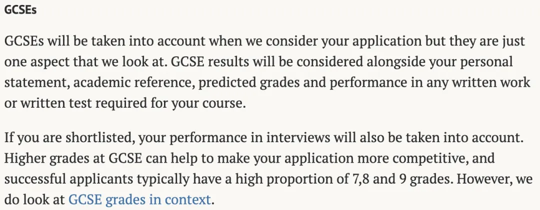罗素大学集团中的许多院校都设定了GCSE/IGCSE入学标准,最低要求通常是英语和数学成绩不低于C/4等级。