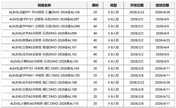 犀牛教育开设Alevel先修班、强化班、冲刺班、全程班等多种班型。入班前会进行入学测试,根据学生的基础和目标院校,定制学习计划,匹配适合的班型。