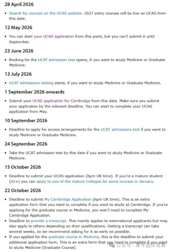 剑桥大学申请时间从2026年4月28日开始,正式在UCAS系统上线,5月12日UCAS申请通知开启。