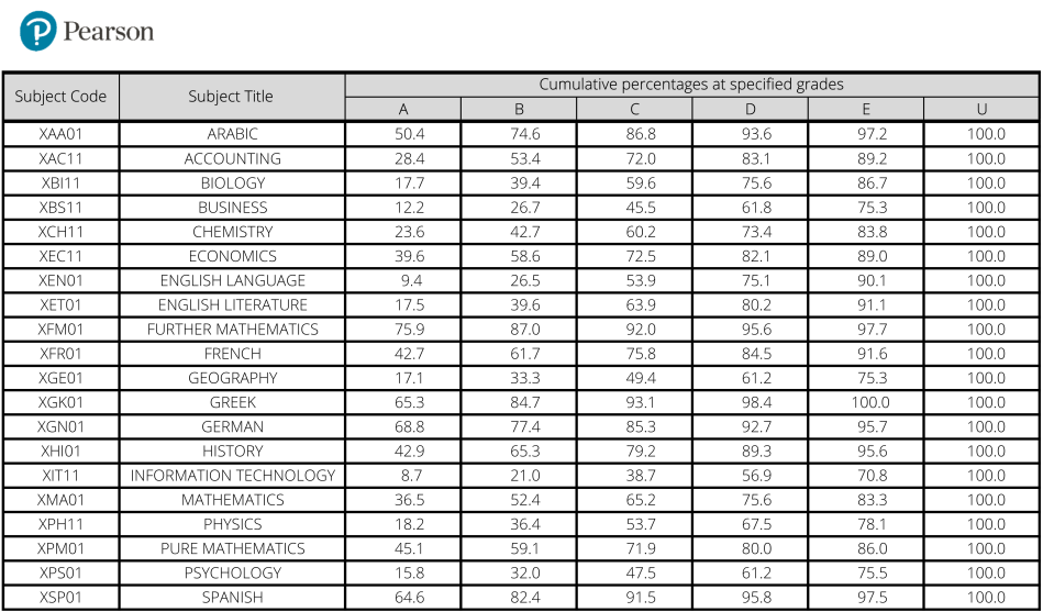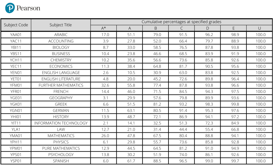 A Level 热门科目A*率: