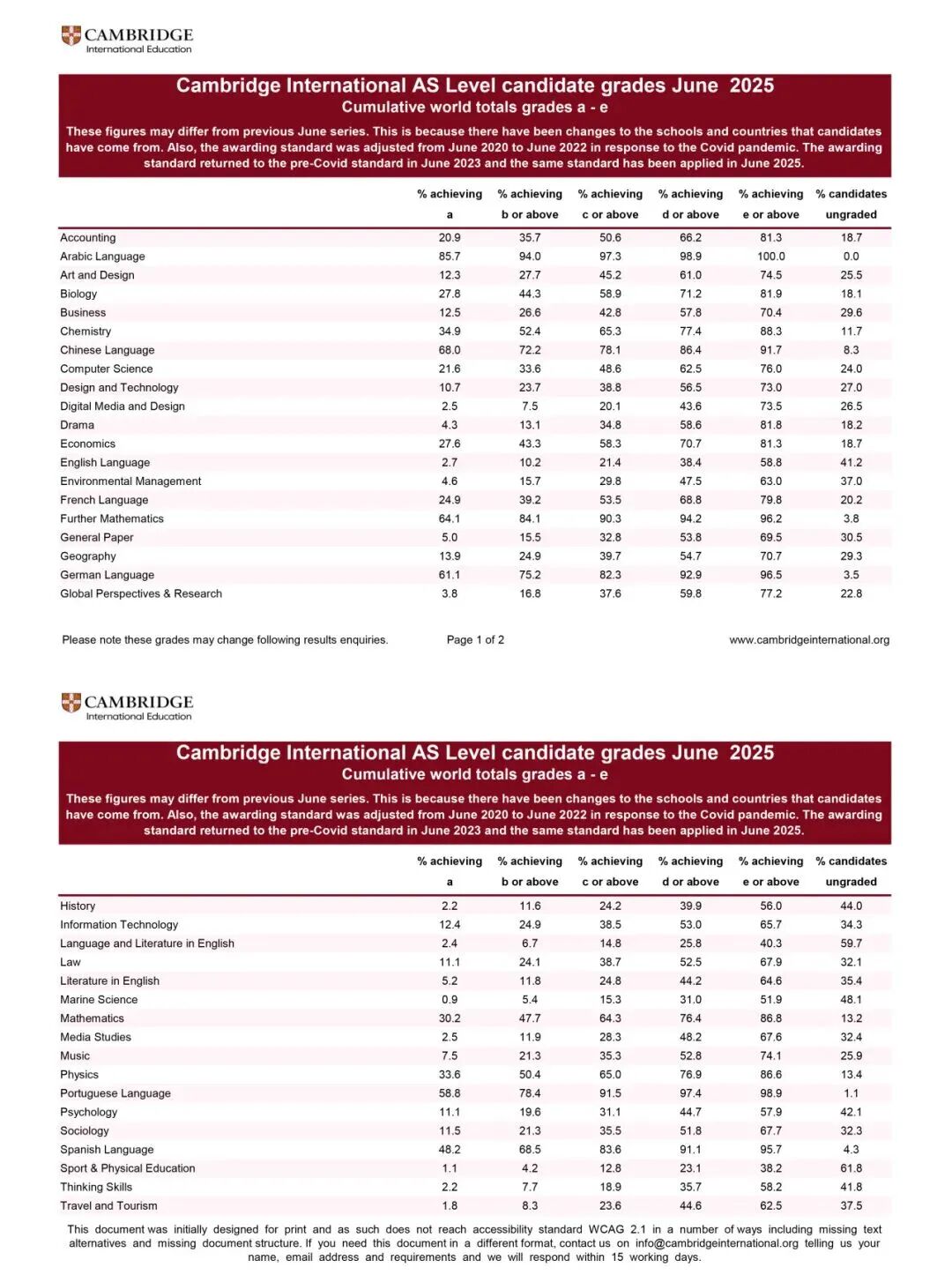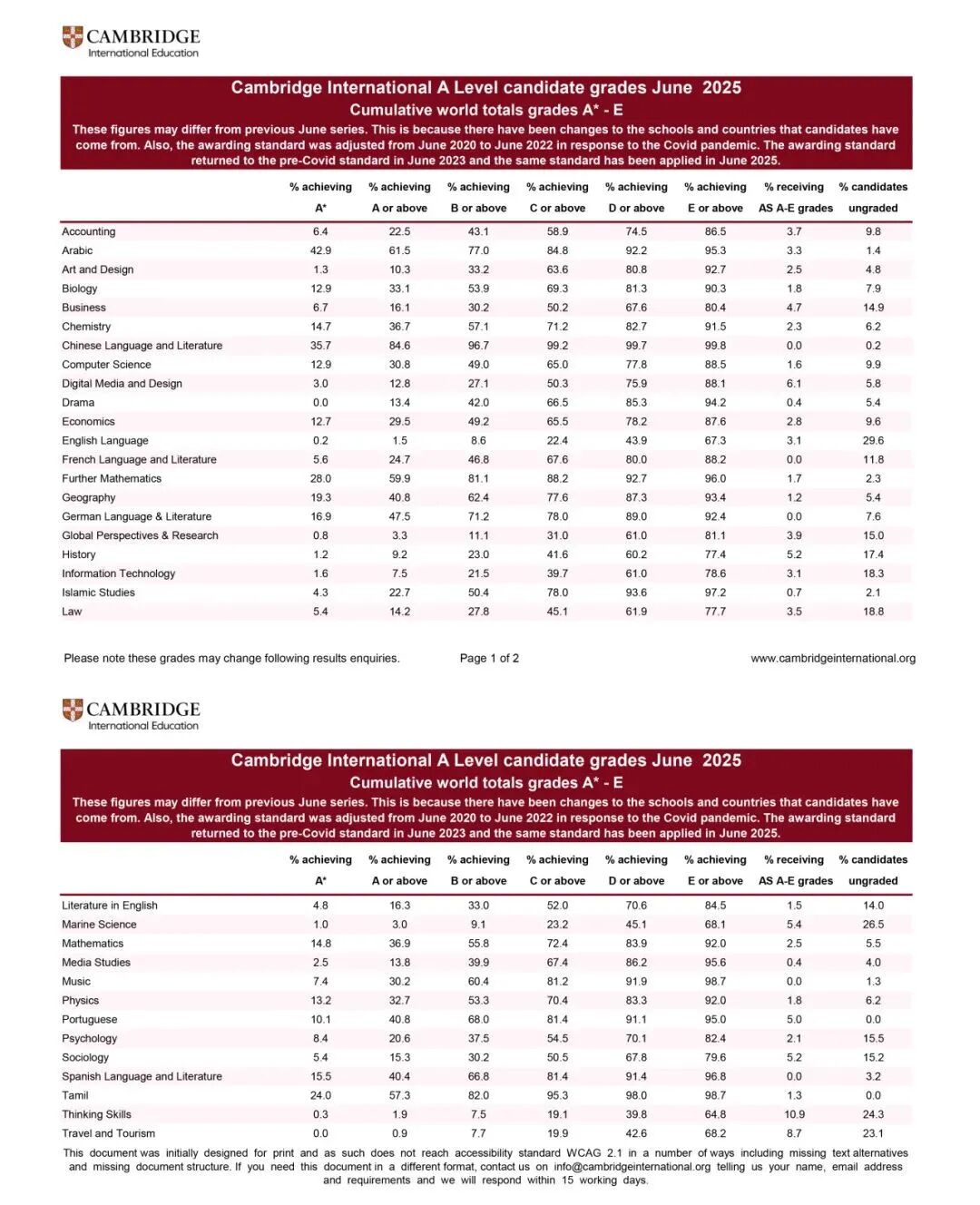 竞争如此激烈的形势下,各位考生的表现如何呢?一起来看下新鲜出炉的CAIE夏季大考的A*/A率情况!